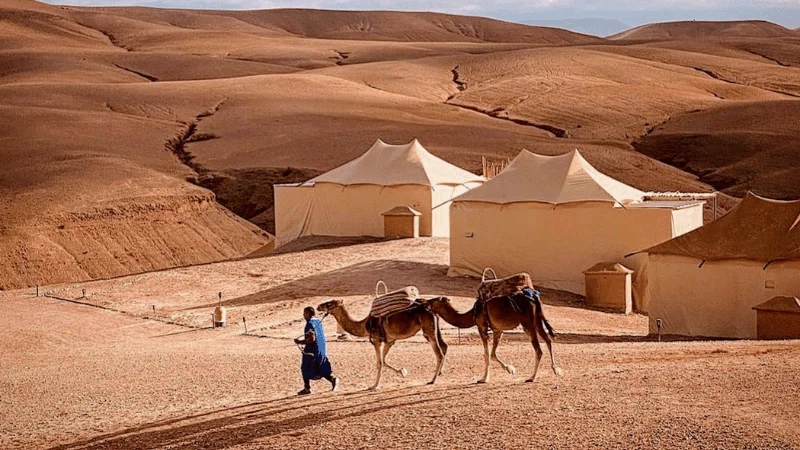 Disfruta del mágico viaje en diciembre con un inolvidable viaje al desierto de Agafay, donde los más pequeños tendrán la oportunidad de conocer a los Reyes Magos en persona durante una experiencia única. El itinerario comienza en Marrakech con una visita guiada por sus palacios y zocos, antes de aventurarse por las montañas del Atlas y llegar al desierto. Durante la estancia en Agafay, vivirás una noche bajo las estrellas en jaimas, mientras los Reyes Magos hacen una parada especial en el campamento. Un viaje con reyes magos perfecto para toda la familia, lleno de aventuras y paisajes impresionantes.